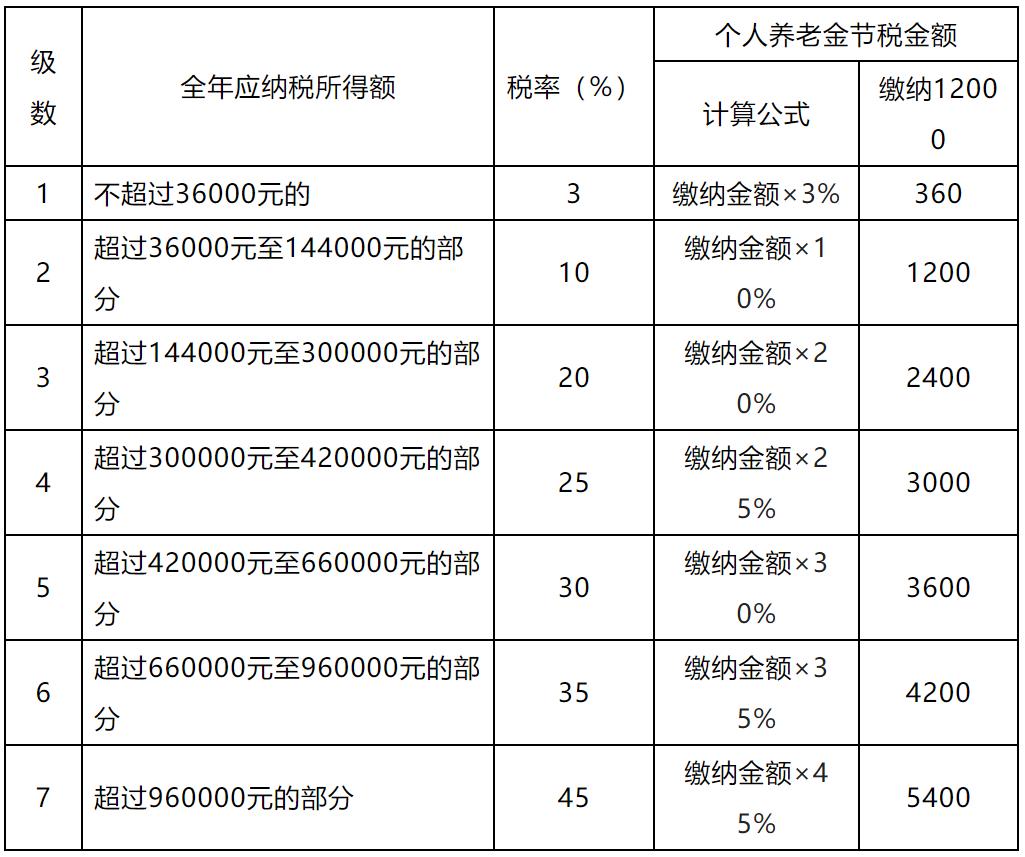 个人向个人养老金资金账户的缴费,按照12000元/年的限额标准,在综合所得或经营所得中据实扣除,其中综合所得适用百分之三至百分之四十五的超额累进税率,经营所得适用百分之五至百分之三十五的超额累进税率。缴纳个人养老金一般按照适用的最高税率计算“省税”额: