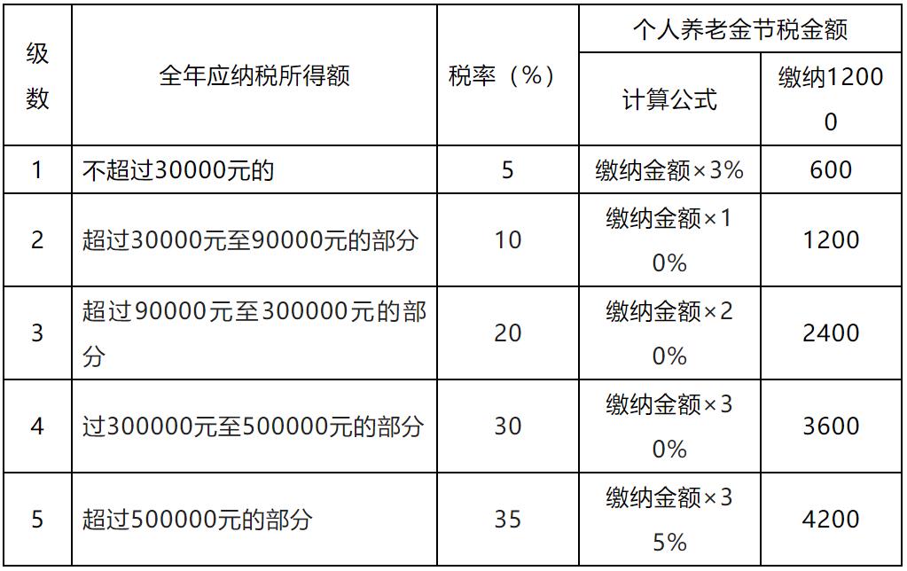 表一:个人在计算综合所得扣除个人养老金计税