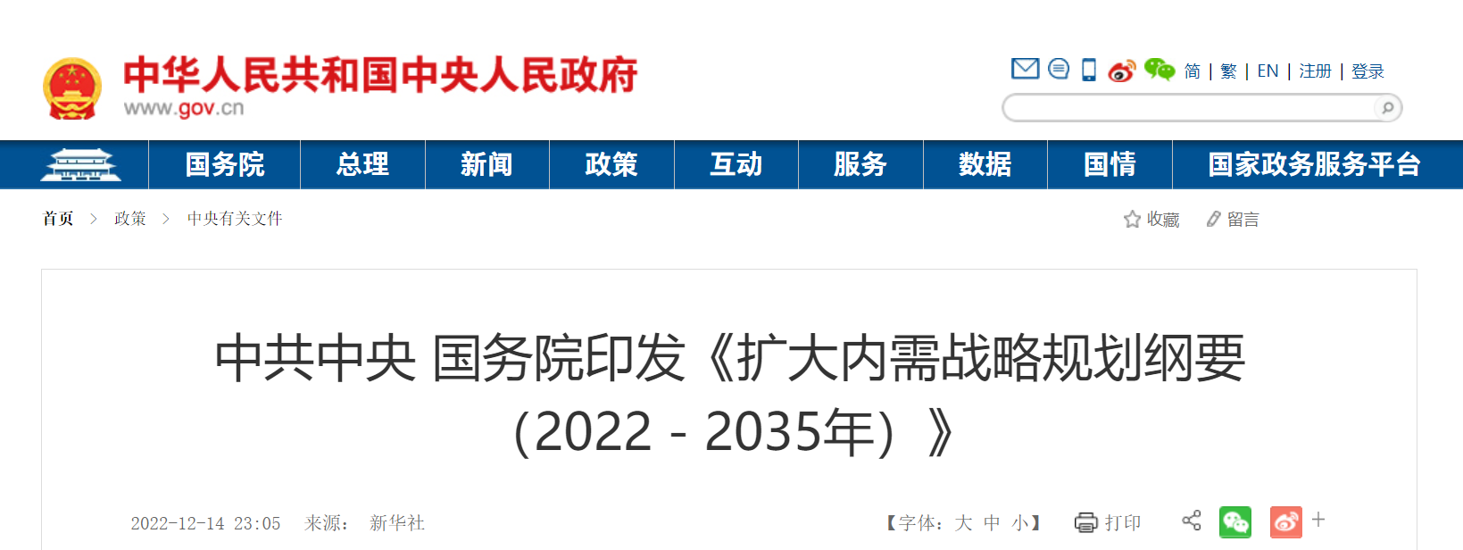 坚定实施扩大内需战略、培育完整内需体系,是加快构建以国内大循环为主体、国内国际双循环相互促进的新发展格局的必然选择,是促进我国长远发展和长治久安的战略决策。为推动实施扩大内需战略,根据《中华人民共和国国民经济和社会发展第十四个五年规划和2035年远景目标纲要》,制定本规划纲要。