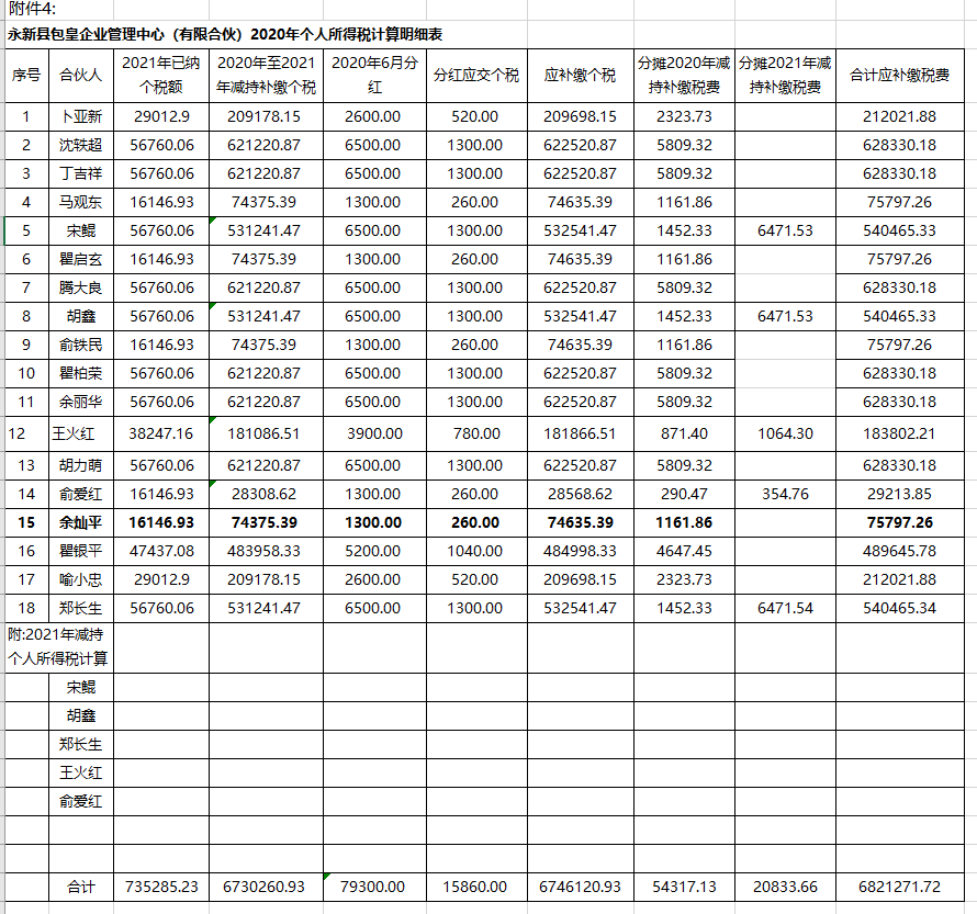 根据《中华人民共和国税收征管法》第三十一条、第五十六条“纳税人、扣缴义务人必须接受税务机关依法进行的税务检查,如实反映情况,提供有关资料,不得拒绝、隐瞒”、《中华人民共和国合伙企业法》第八十一条“有限合伙人退伙后,对基于其退伙前的原因发生的有限合伙企业债务,以其退伙时从有限合伙企业中取回的财产承担责任”规定,请卜亚新等16个有限合伙人在收到本通知书后3个工作日内提供包括但不限于包皇退伙财产分配决议及分配到 个人财产情况。如否,我局将依现有证据向卜亚新等16个有限合伙人计算应补缴税(费)(详见附件),并限2023年9月18日前向我局进行补缴,我局视补缴情况将做出税务处理。另,经查,包皇及18个合伙人存在以下涉税事项: