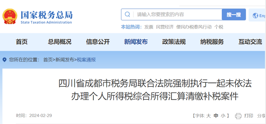 四川省成都市税务局联合法院强制执行一起未依法办理个人所得税综合所得汇算清缴补税案件