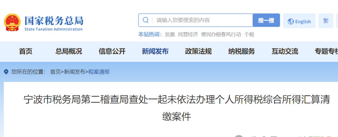 宁波市税务局第二稽查局查处一起未依法办理个人所得税综合所得汇算清缴案件
