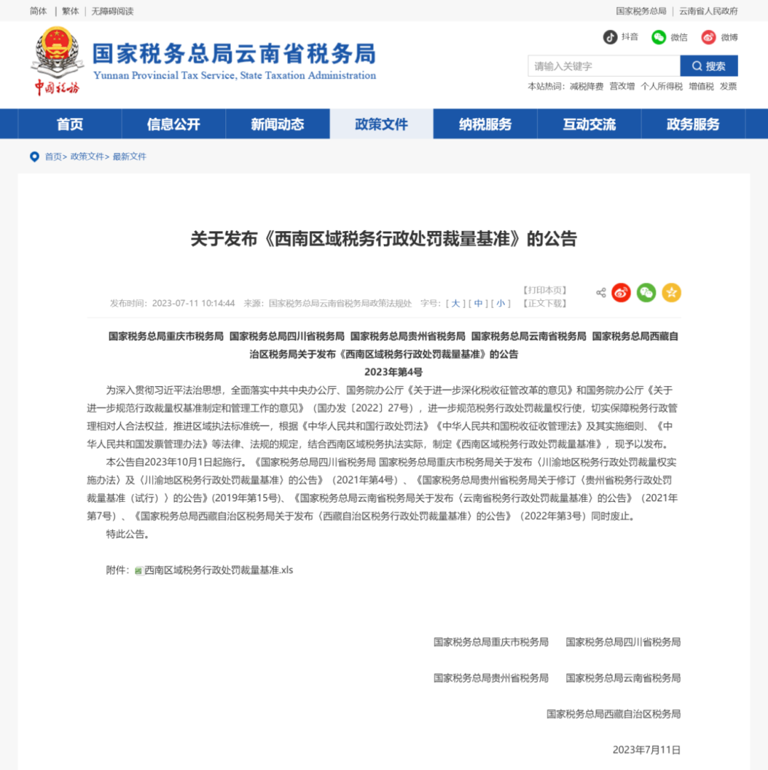 但是,稽查局在对YR企业管理中心下达的《税务行政处罚决定书》中似乎存在一点瑕疵:《西南区域税务行政处罚裁量基准》已于2023年10月1日起施行,《云南省税务行政处罚裁量基准》(国家税务总局云南省税务局公告2021年第7号)同日废止,虽然YR企业管理中心税收违法行为发生在《云南基准》生效期内,但行政处罚裁量属于程序问题,按照“实体从旧、程序从新”原则,除非适用旧基准对纳税人更为有利,《税务行政处罚决定书》似应引用已生效的《西南基准》作为依据为妥。