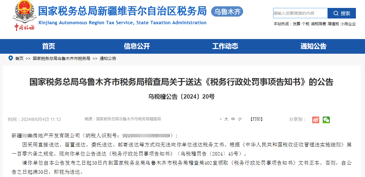国家税务总局乌鲁木齐市税务局稽查局税务行政处罚事项告知书