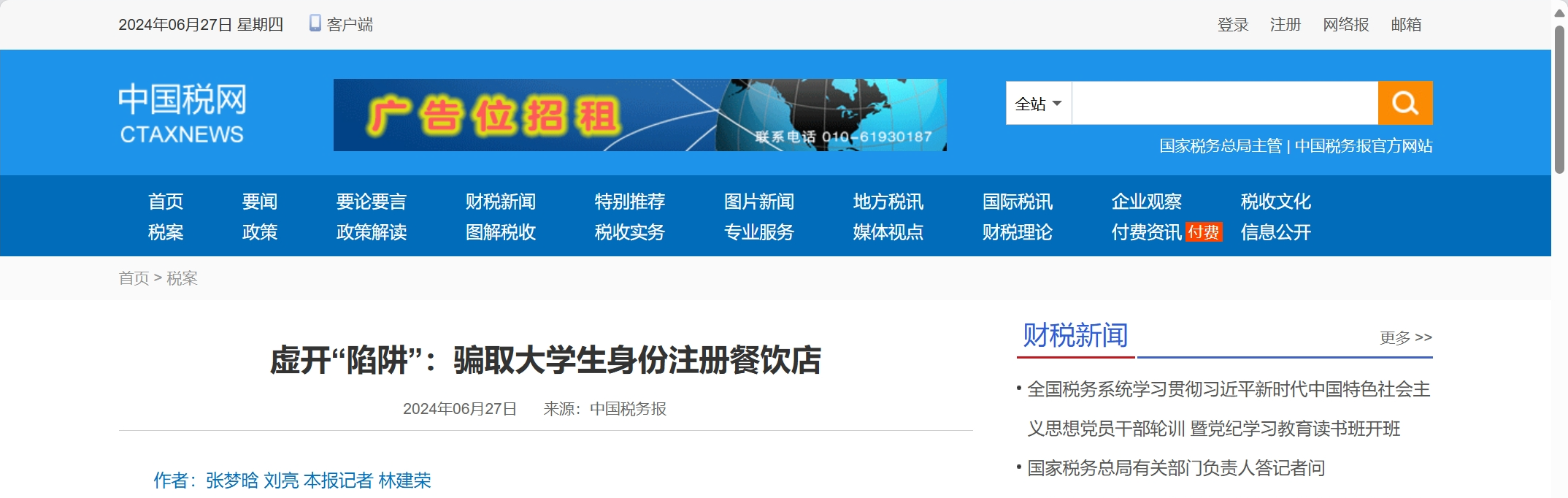 虚开“陷阱”:骗取大学生身份注册餐饮店