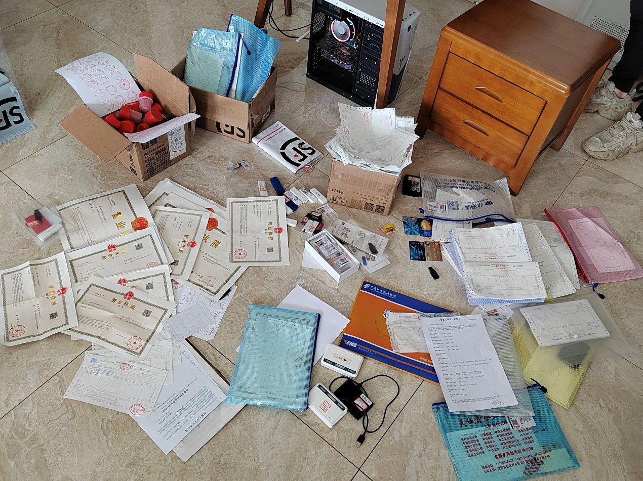 2023年4月的一天,税警联合,兵分多路发起抓捕行动。当日凌晨,税务和公安人员进入多个作案团伙窝点。在一个开票窝点,税务和公安人员看到多台开票机装在加有隔音棉的木箱中,这显然是为了隐藏开票痕迹。