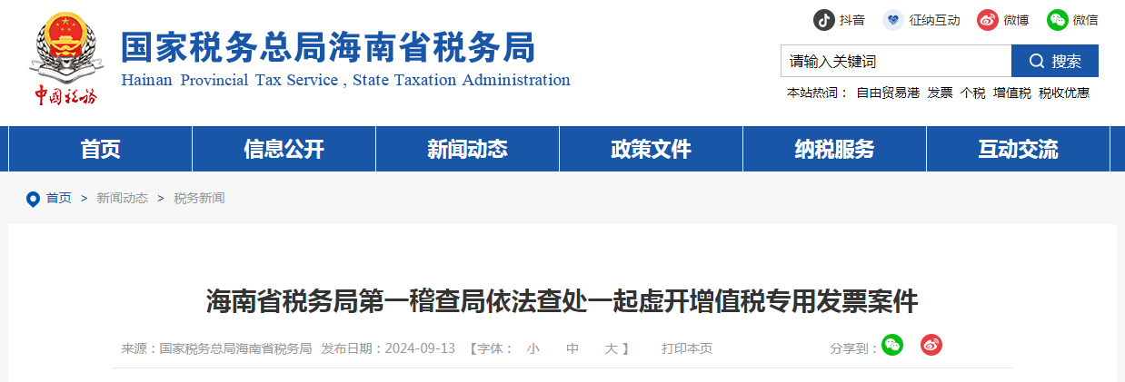 近期,海南省税务局第一稽查局根据精准分析线索,依法查处了海南豪立能源化工有限公司虚开增值税专用发票案件。