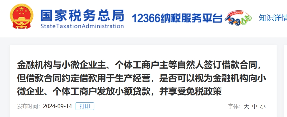 答复口径:按照《财政部 税务总局关于支持小微企业融资有关税收政策的公告》(2023年第13号,以下简称13号公告)和《财政部 税务总局关于金融机构小微企业贷款利息收入免征增值税政策的公告》(2023年第16号,以下简称16号公告)等文件规定,金融机构向小型企业、微型企业和个体工商户(以下统称小微企业)发放小额贷款取得的利息收入,可以按规定免征增值税。金融机构向小微企业主等自然人发放小额贷款取得的利息收入,不得按照13号公告、16号公告等文件有关规定免征增值税。
