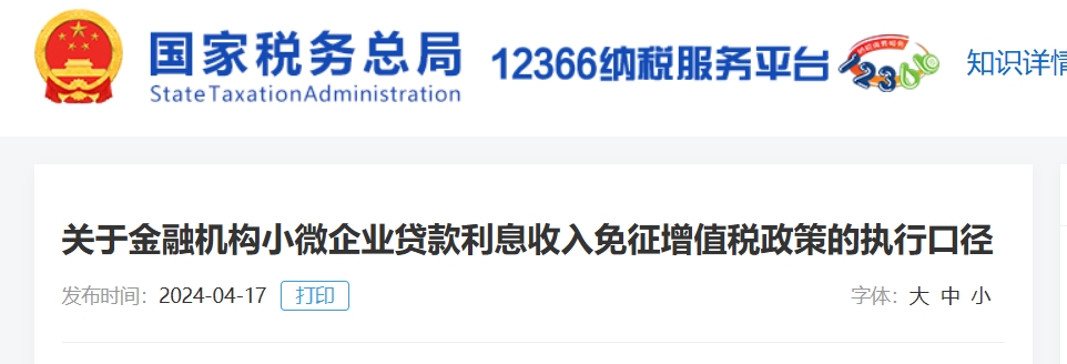 《财政部 税务总局关于金融机构小微企业贷款利息收入免征增值税政策的公告》财政部 税务总局公告2023年第16号
