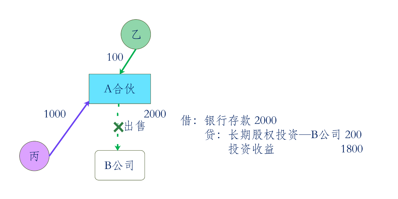例:乙是A合伙企业的个人合伙人,A合伙企业对外投资设立B上市公司,A公司将从B公司分回的股息、红利,分配给乙。