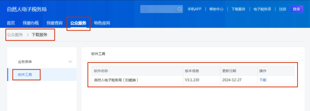 一、软件下载:通过网址https://etax.chinatax.gov.cn登录【自然人电子税务局】-【公众服务】-【下载服务】-【软件工具】- 下载自然人电子税务局(扣缴端)。