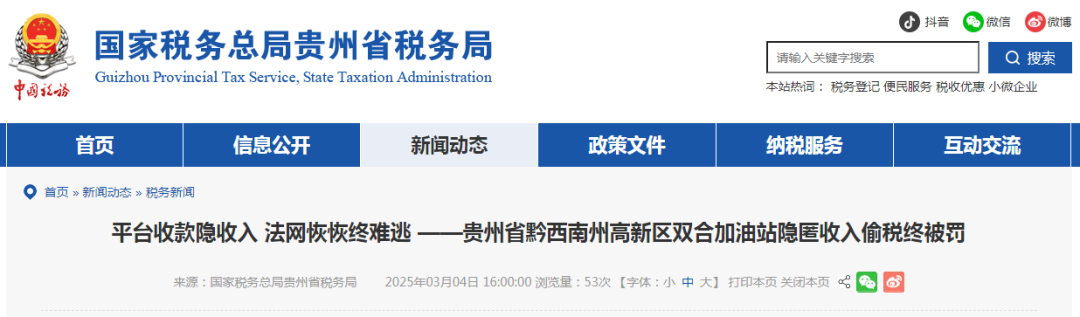 国家税务总局黔西南州税务局第二稽查局查办的义龙新区双合加油站偷税案中,涉案加油站通过删除加油管理软件中的加油数据、使用第三方支付平台收取加油款项存入个人账户,设置“账外账”不计少计收入偷税。稽查部门依法对其作出追缴税款、滞纳金、罚款共计1214万元的处理处罚决定。目前,该加油站涉案税款、滞纳金、罚款已全部追缴入库。
